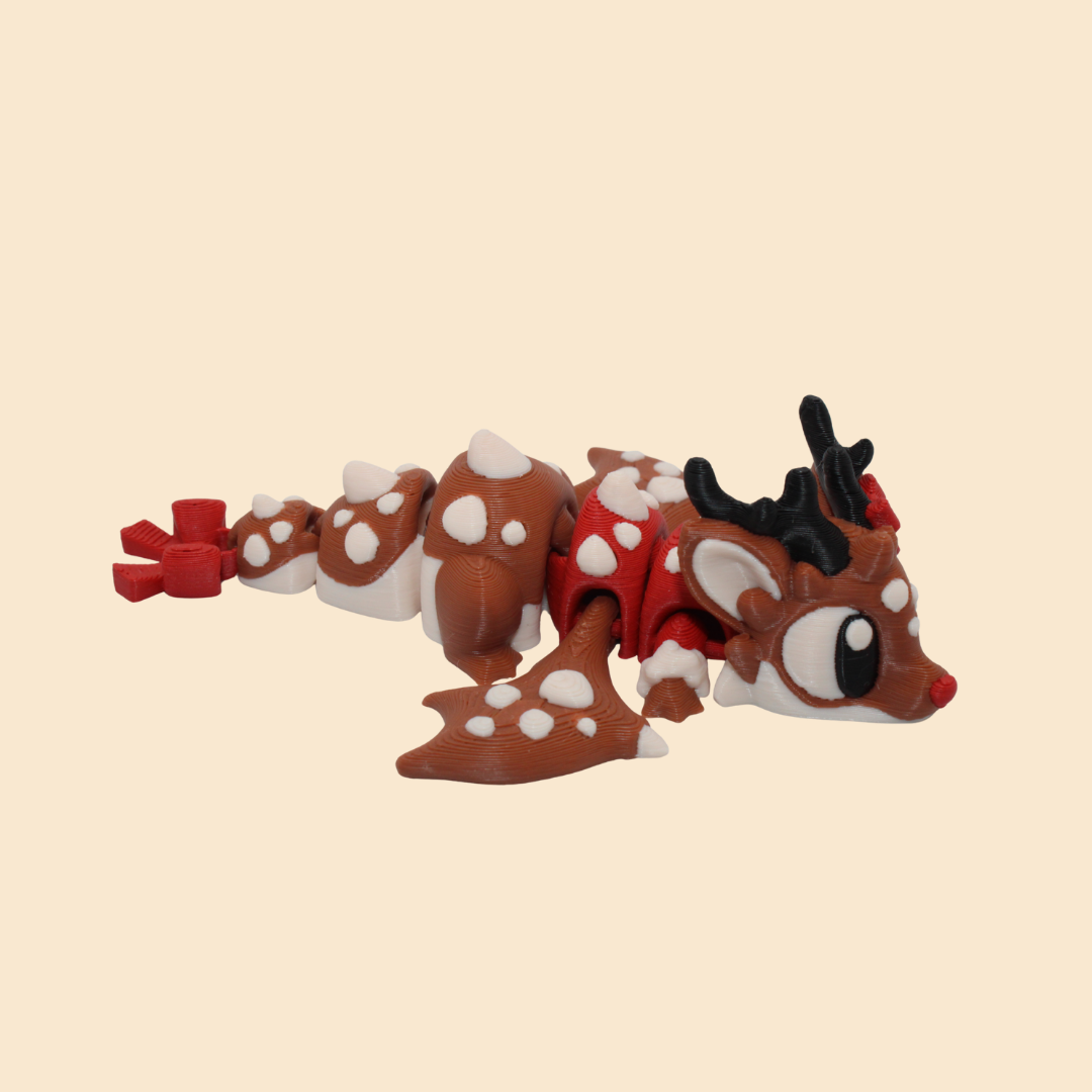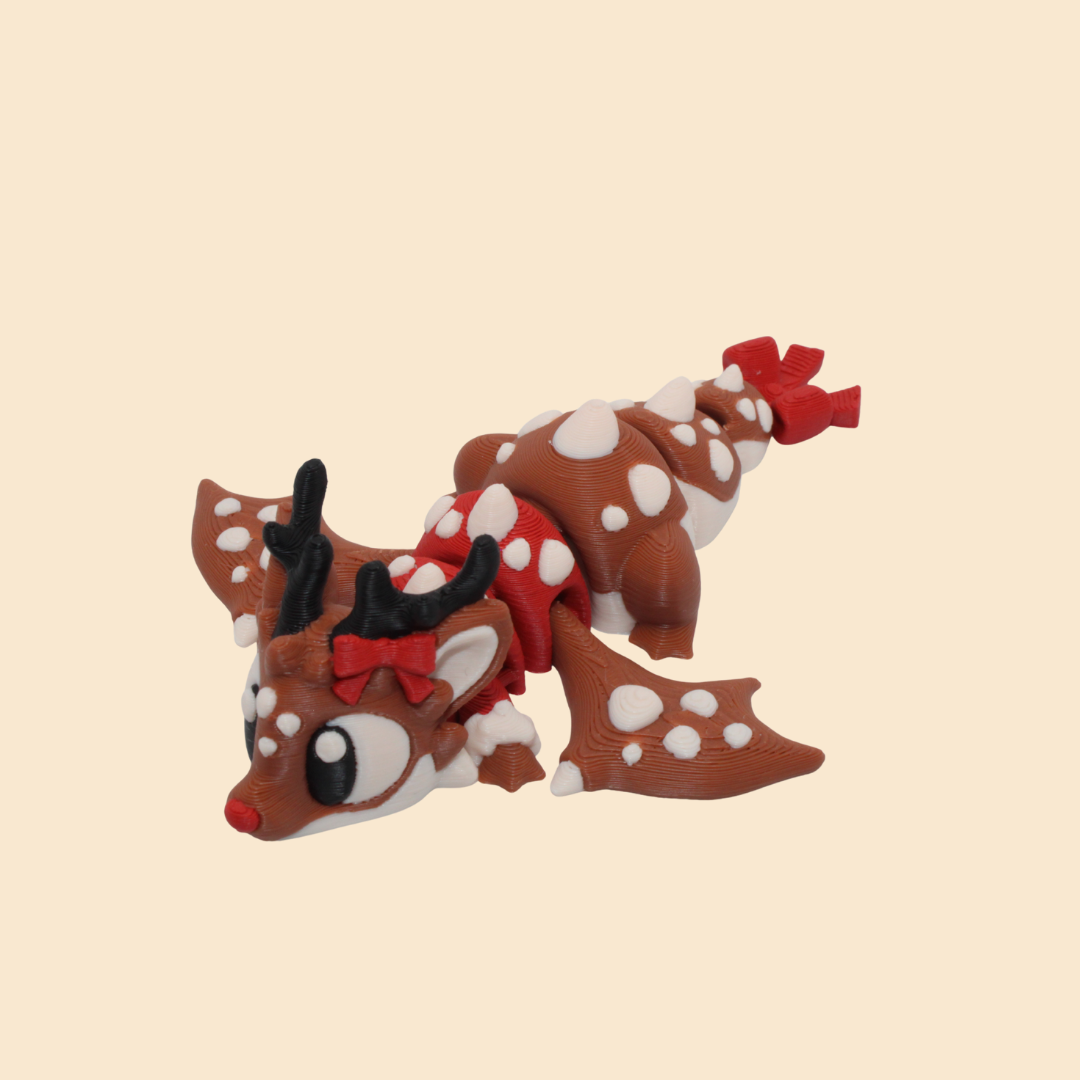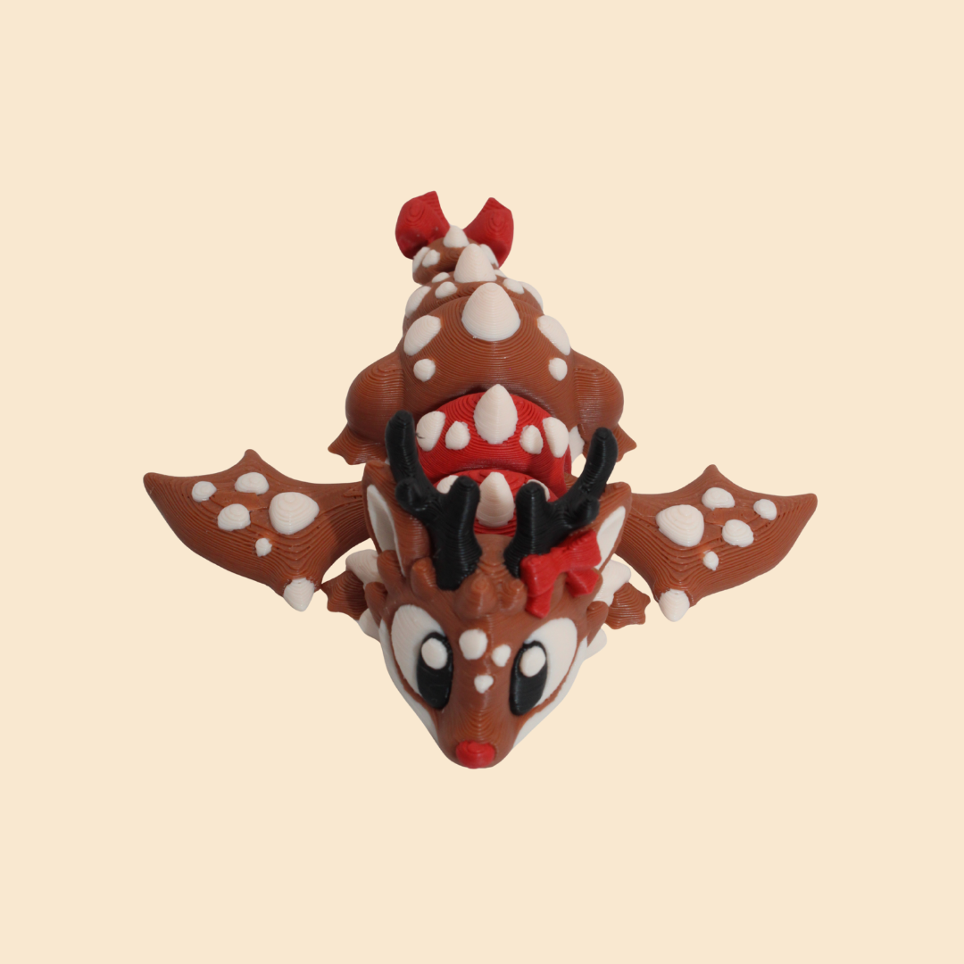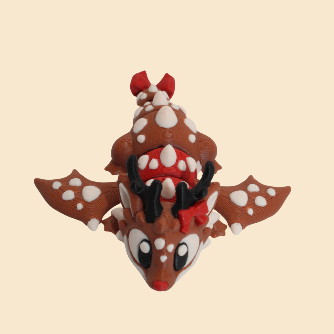 El Dragón Reno mezcla tonos rojo, marrón y blanco, con un look festivo ideal para decoración de temporada o como regalo especial. Articulado, adorable y con un diseño que encaja perfecto en cualquier rincón.